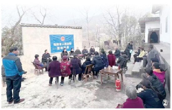 图② 2023年2月7日,一起因邻里矛盾引起的健康权纠纷在旬阳市仙河镇观庄社区五组一村民小院内开庭审理。当地村民、乡镇村干部在家门口零距离感受现场庭审,聆听了一堂普法课。