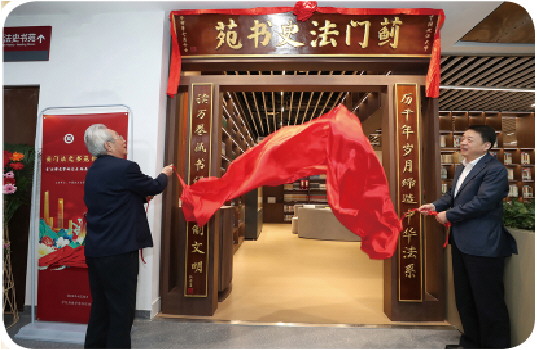 图为2024年4月,张晋藩(左)与中国政法大学时任校长马怀德(右)为“蓟门法史书苑”揭幕。