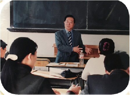 图为20世纪90年代,张晋藩为博士生授课。
