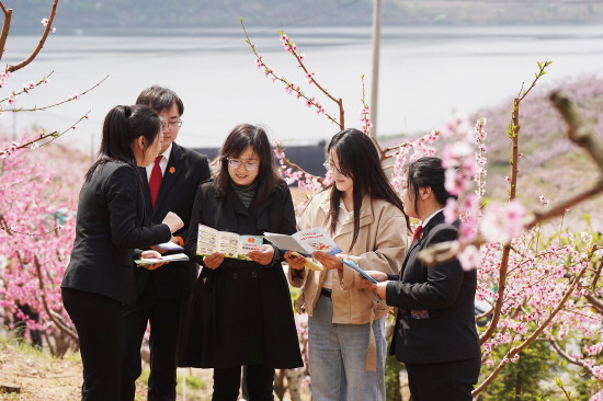 近日,正值辽宁省丹东市宽甸满族自治县长甸镇河口村桃花季,丹东市中级人民法院联合宽甸满族自治县人民法院干警走进河口村,开展以“法治桃花·朵朵向阳”为主题的民法典普法宣传活动。图为丹东法院干警向赏花群众普及法律知识。 本报记者 韩宇 本报通讯员 孟蕾 摄