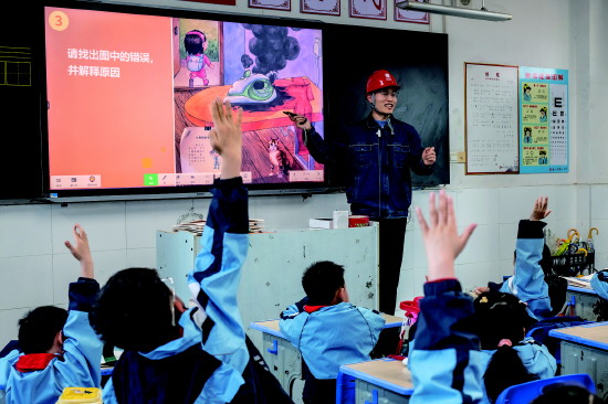 近日,安徽省芜湖市南陵县教育局联合县公安局交通管理大队、国网南陵县供电公司,走进籍山镇中心小学开展安全知识宣讲活动。图为同学们踊跃举手回答工作人员提出的问题,在寓教于乐的氛围中学习安全用电知识。 肖本祥 摄